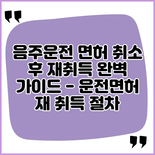 음주운전으로 면허가 취소된 후, 재취득을 위해 어떤 절차를 밟아야 하나요?